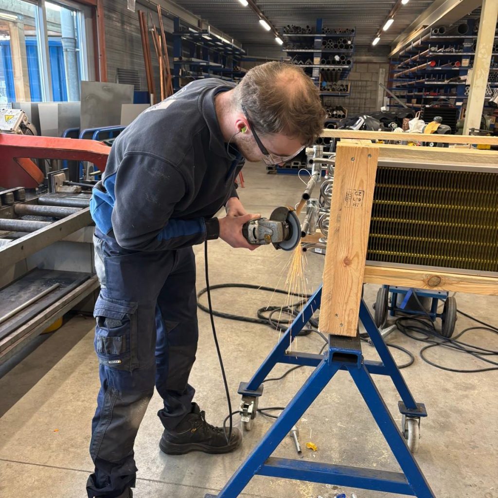 Rutger werkt nooit alleen. “Ik ga altijd met een collega op pad. Soms werk ik met iemand van midden vijftig, dan weer met iemand van eind twintig. Dat leeftijdsverschil is juist leerzaam. Je ziet verschillende werkwijzen en leert veel van elkaar.” Bij servicewerkzaamheden gaat hij vaak met wisselende collega’s mee, waardoor hij snel veel mensen leert kennen binnen het bedrijf.